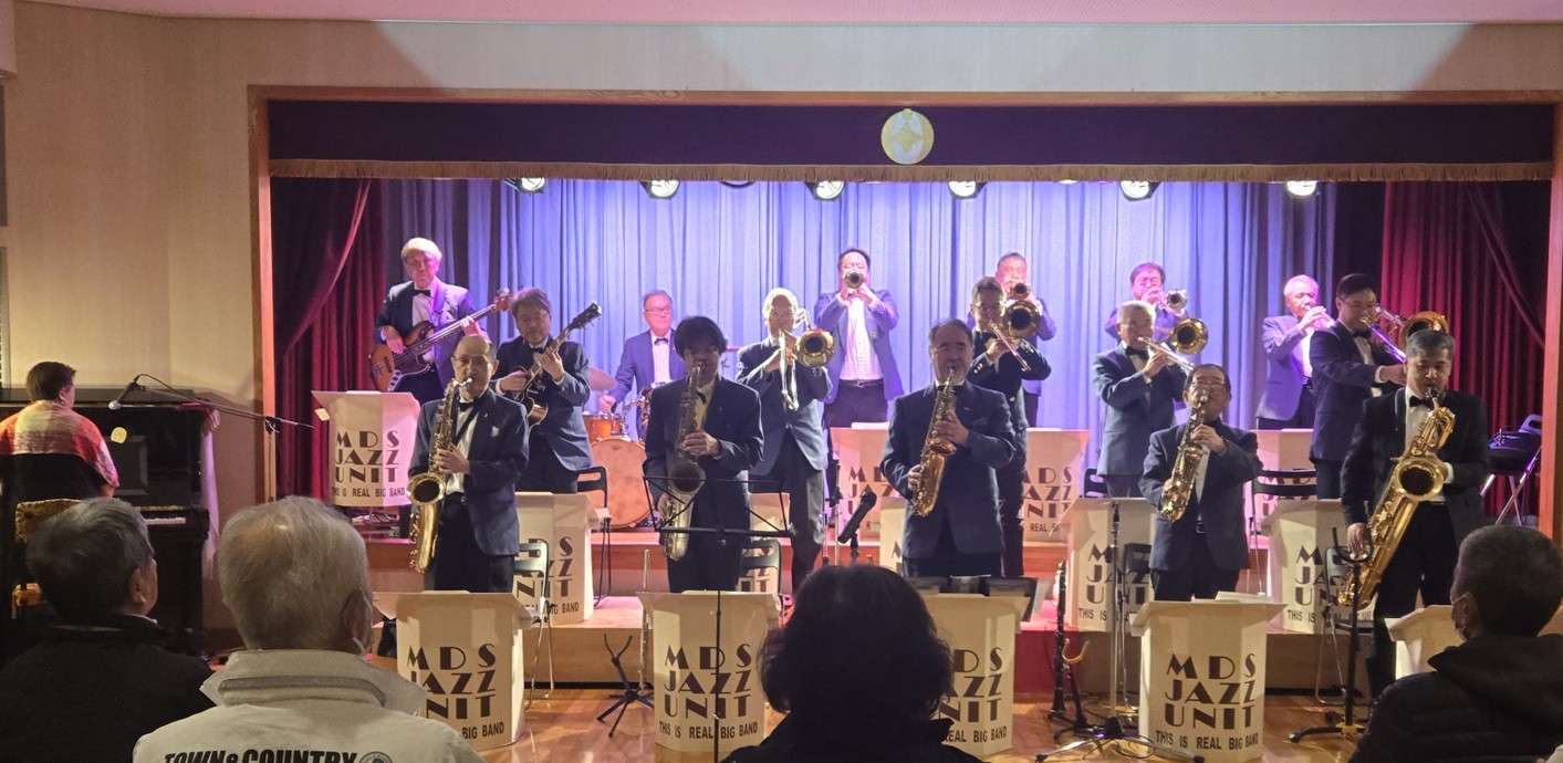 MDSジャズユニットは結成35年のビッグジャズバンドですが、後期高齢者も多く最高齢の方が87歳と聞きビックリしました。
